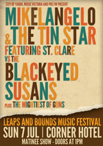 In the Spiegeltent Blackeyed Susans + Strings. This one-off performance celebrates the Susans’ rich career – over 25 years and counting – which has seen the band playing its dark, country-tinged songs on tour with such greats as Johnny Cash and Leonard Cohen.